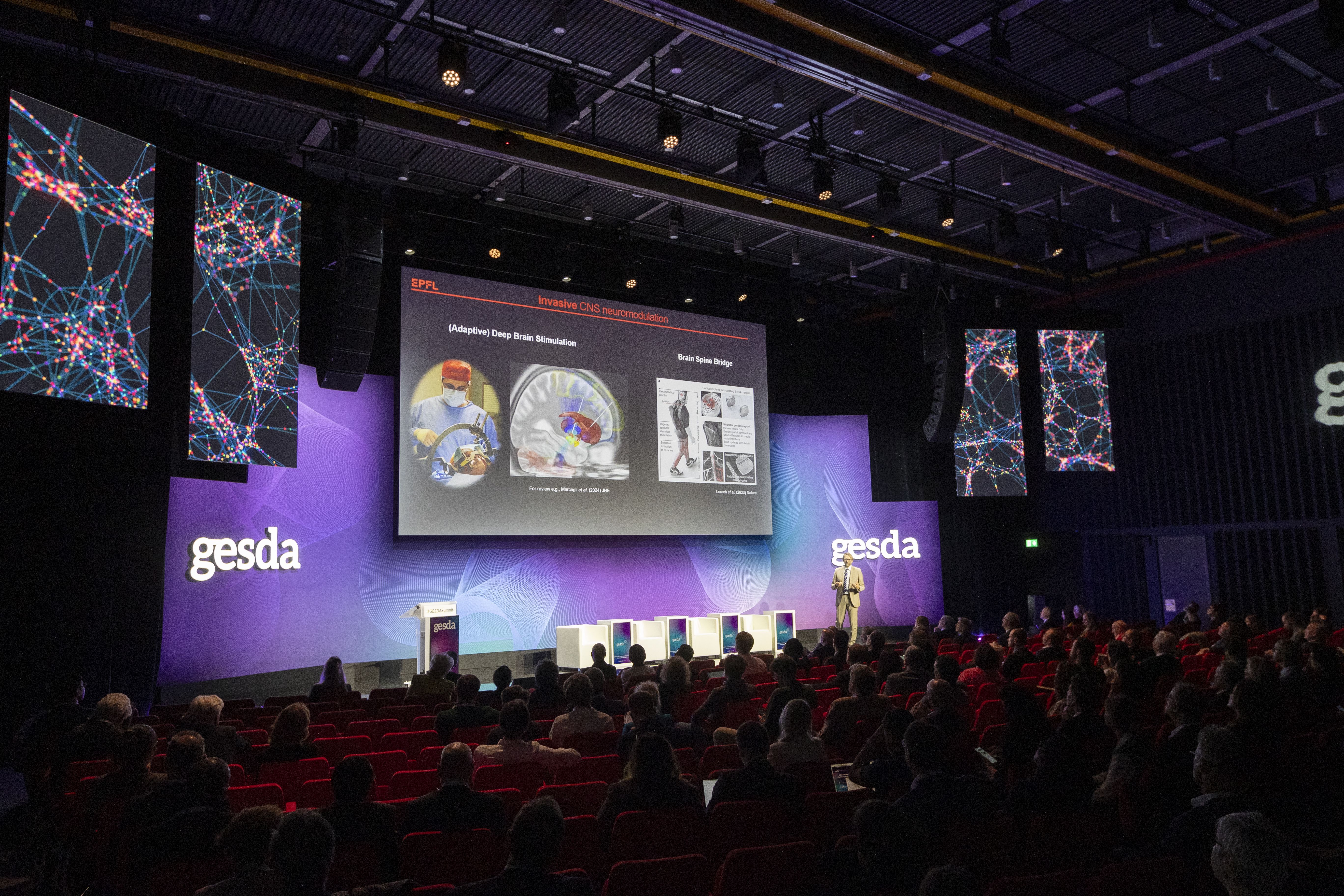 One of the recurring themes throughout the GESDA Summit was the importance of a multistakeholder approach involving communities, policymakers, technologists, and healthcare providers. This approach, as a speaker reiterated, is essential for building trust, which in turn is critical for neurotechnology’s widespread acceptance. By involving end users early in the design and implementation process, developers can better understand and address the real-world needs of those with neurological conditions. Many advanced neurotechnologies are approaching market readiness but continue to face barriers, particularly in affordability and end-user design. The speaker highlighted the importance of considering the socioeconomic dimensions while arguing that early engagement with affected communities and an inclusive approach to design can help build trust and prevent the abandonment of these technologies. This perspective reinforces the need for interdisciplinary and intergenerational approaches in neuroscience for more accessible solutions. By creating technology that is responsive to the needs of those living with neurological disorders, developers can reduce health-care costs and improve quality of life.