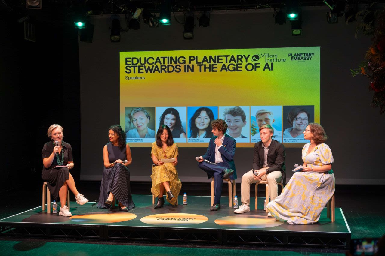 In collaboration with Swissnex Boston and New York, the Villars Institute convened a curated group of educators, entrepreneurs, enablers, and Villars Fellows for a multidisciplinary, intergenerational panel on Day 2 of the Planetary Embassy at the New York Climate Week. The session, “Educating Planetary Stewards in the Age of AI,” explored how schools and learning programs can equip students with the mindsets and skills to navigate—and help govern—a world where human and more-than-human interests intersect with rapidly advancing technologies, emphasizing education, nature-based design, and ocean stewardship.